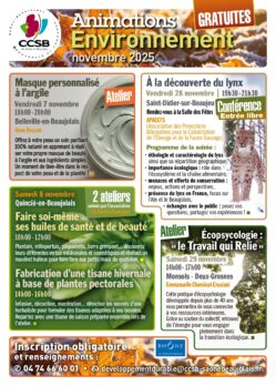 Places limitées, renseignements et réservations par téléphone au 04 74 66 60 01 ou par mail developpementdurable@ccsb-saonebeaujolais.fr