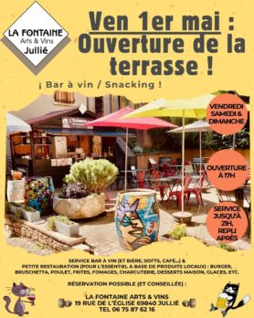 Vendredi 1er mai : ouverture de la terrasse à la Fontaine Arts & Vins (Jullié – Beaujolais)